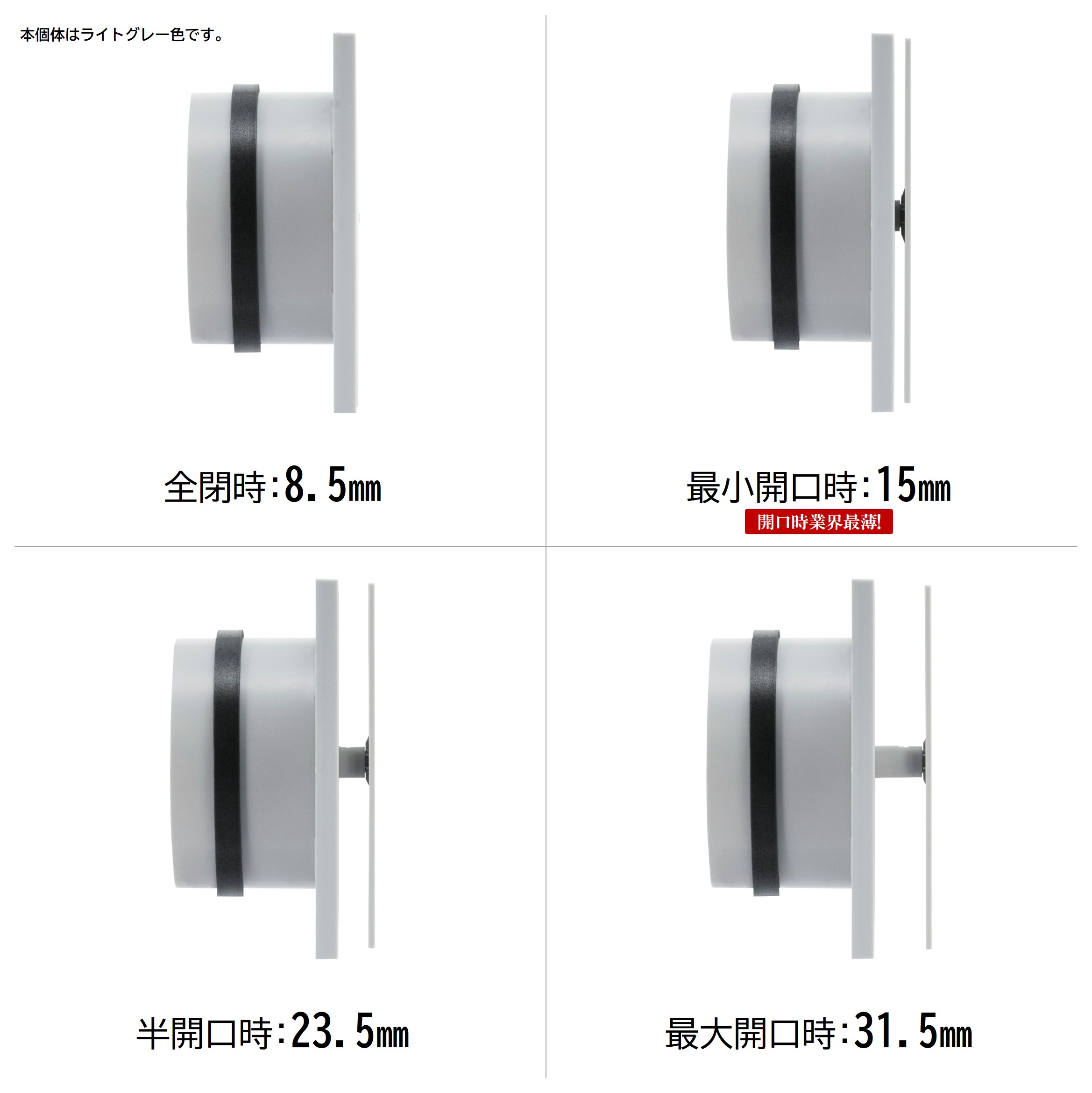 超薄型×超スタイリッシュ給気口プッシュ式で3段階に開口度の調節が可能。指で軽く押すだけで開閉。